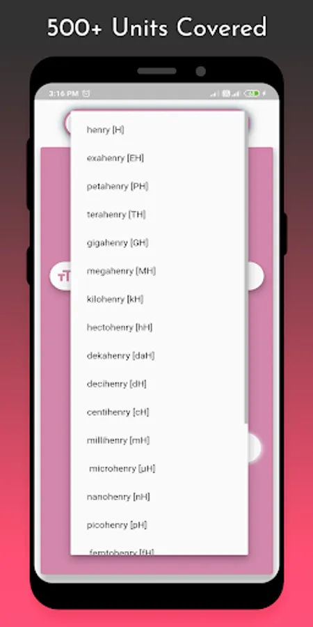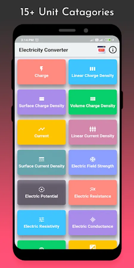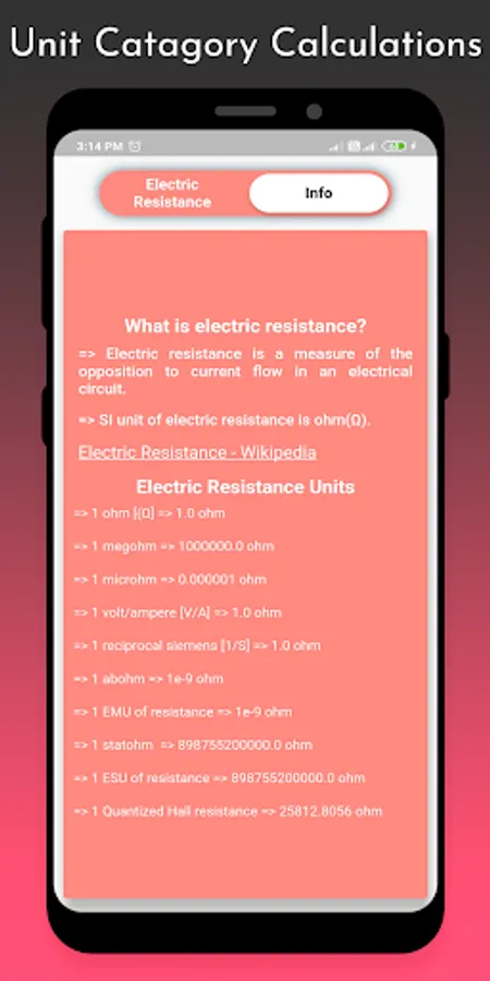 Electrical Unit measurement app also has other information features related to the unit calculations and SI units.