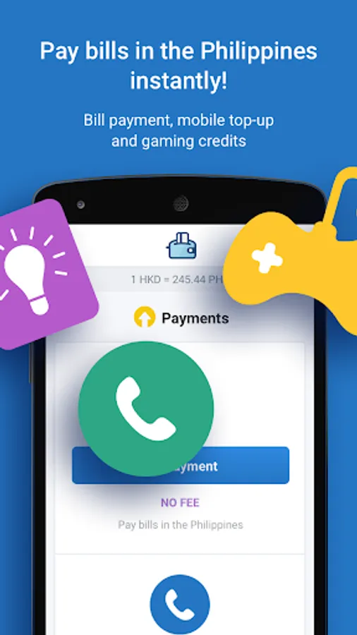 More top up options coming soon as well as bill payment and pre-paid mobile top up with over 80 providers such as Meralco, SSS, Manila Water, Smart, Globe and more.