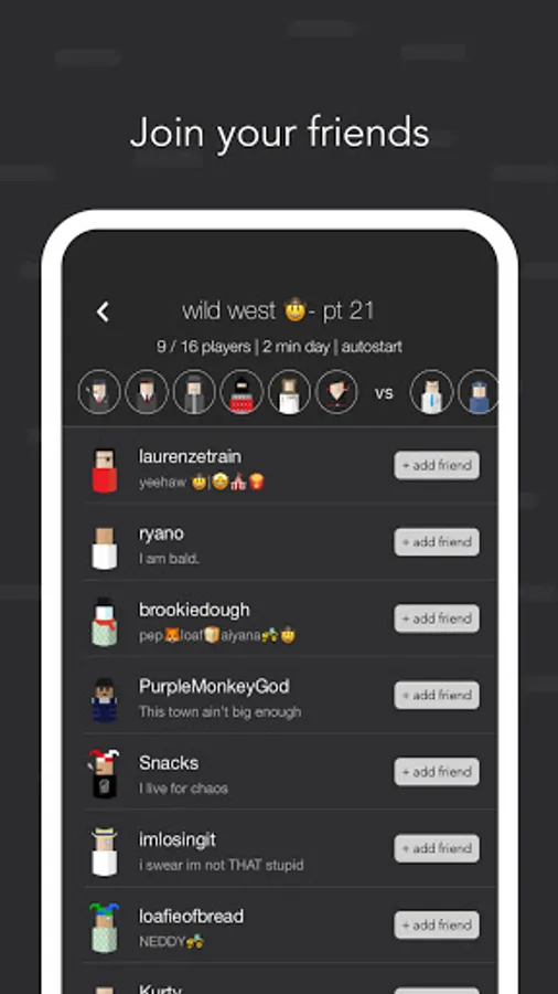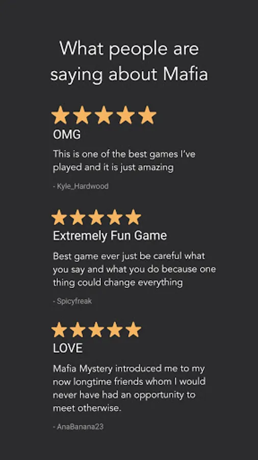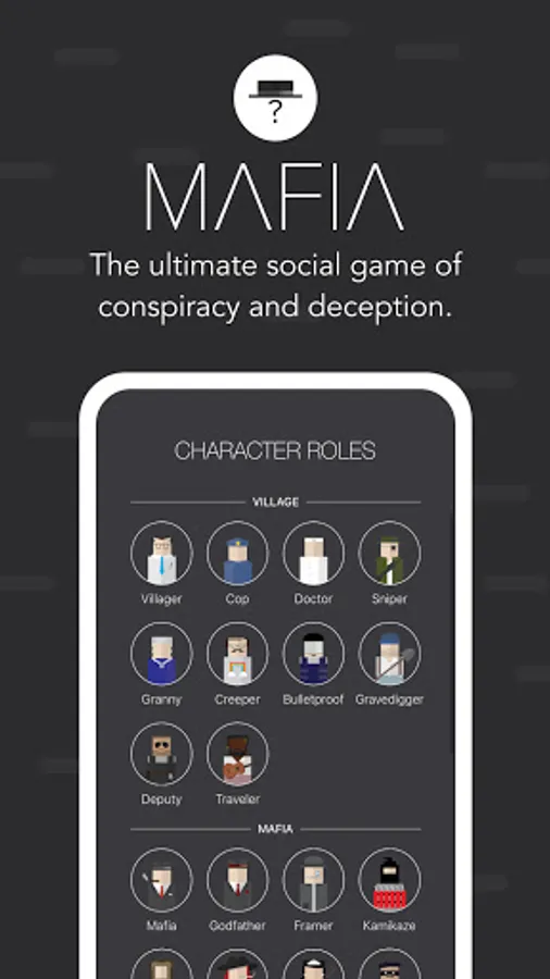 With Mafia Mystery there’s no need for a narrator, so jump in and start playing games! You can create games with up to 24 players, private mode, 19 unique roles, and a customizable game length.