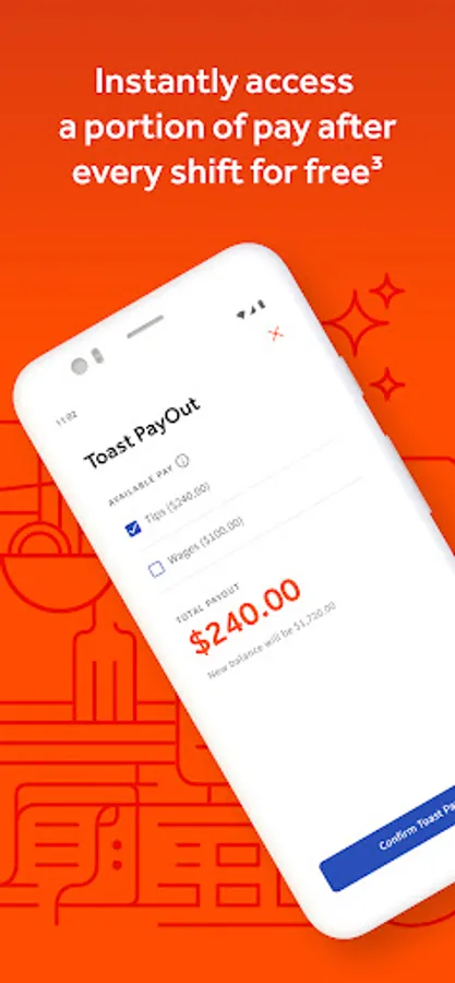 Tips and wages available for Toast PayOut will appear in-app after your shift(1)