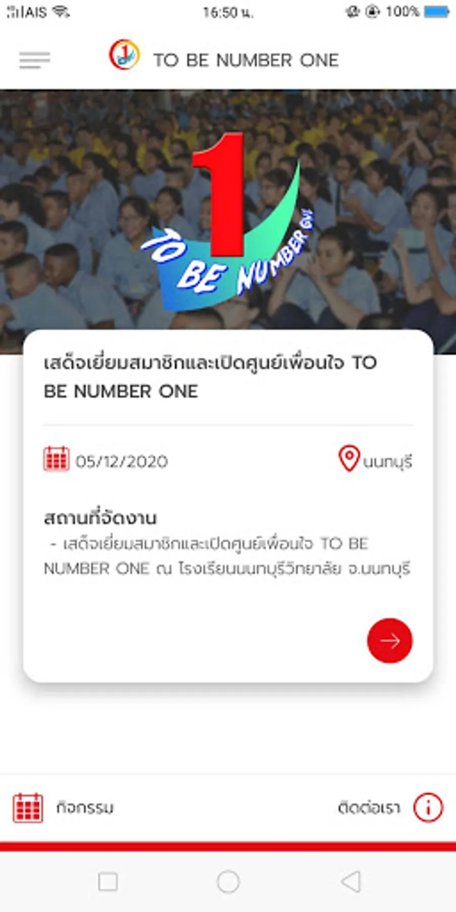 TO BE NUMBER ONE app is an app to update activities and service centers within the project (TO BE NUMBER ONE club) in each area.