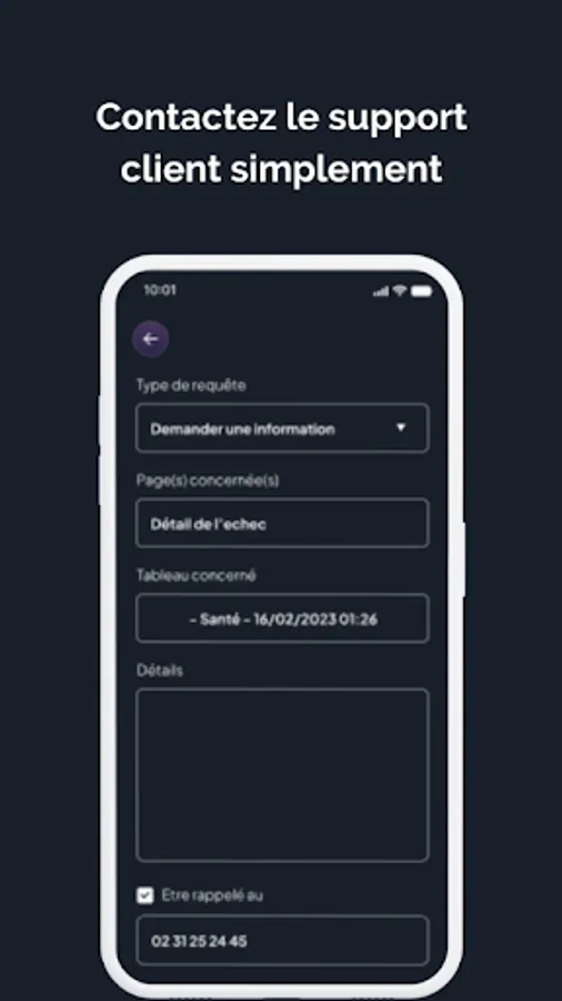 A simplified contact through the application, to help you interpret the results in the event of failures or to answer your questions.