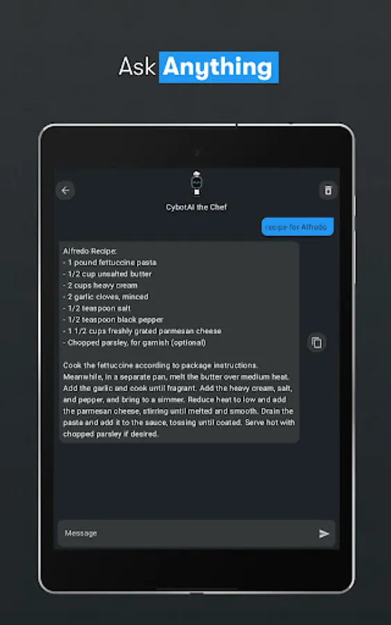 This CybotAI: AI Chatbot, AI Assistant is not a typical chatbot. This ai chat assistant uses its extensive training to give personalized responses and interactions. Use it as your pocket assistant to get ai answers and ai solutions to all your problems with a unique experience.