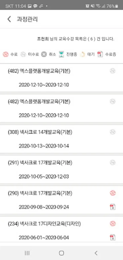 * Self-issuance of the certificate of completion through the ‘Course Management’ menu or application for training through the ‘Education Schedule’ menu is very useful for students.