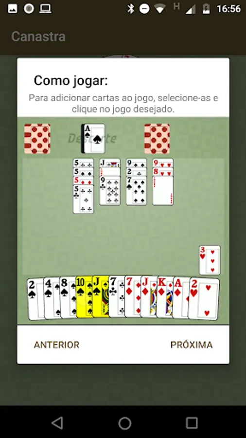 Very similar to the hole, the 3p3v canasta is played with 4 players in pairs. Each player is dealt 13 cards at the start of the game, and each pair must join their cards in sequences and broken cracks. Games with more than 7 cards are called Canastras, which are worth 100 points if they have jokers and 200 points plus 100 points for each card plus 7 if they don't (for example, a clean 9-card canasta is worth 400 points (200 + 100 * (9-7)).