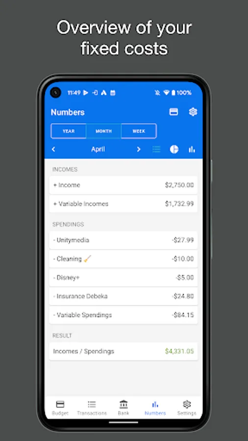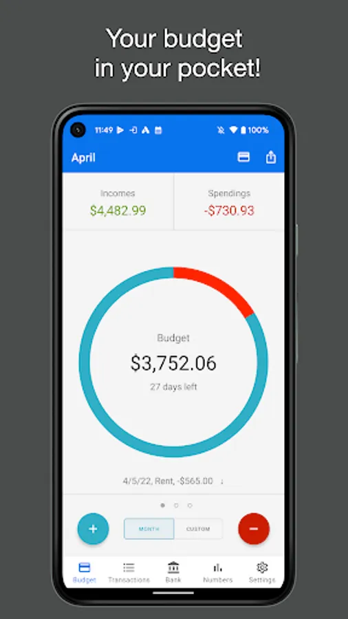 Your budget in your pocket! Keep an overview of your finances and control your income & spendings at a glance!