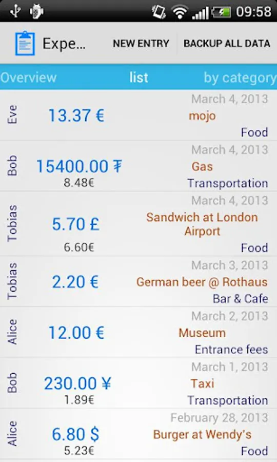 Supports multiple currencies and automatically downloads the latest exchange rates.
