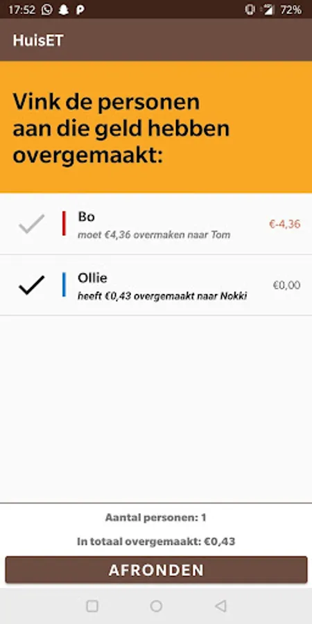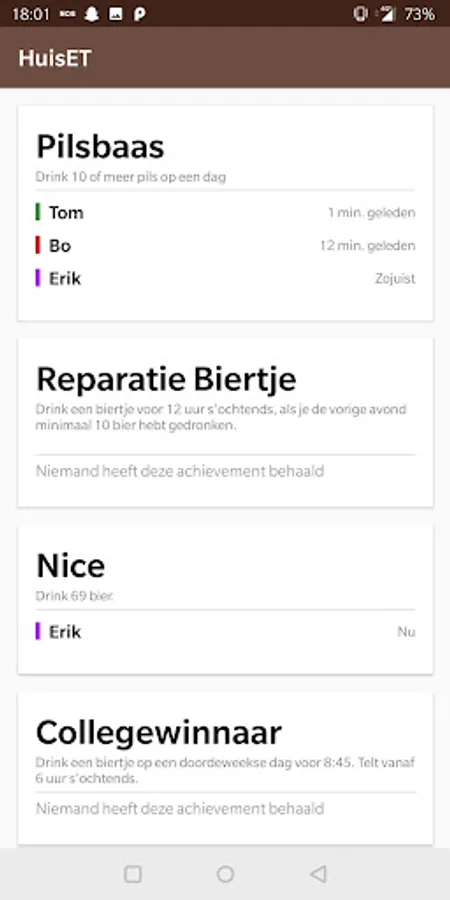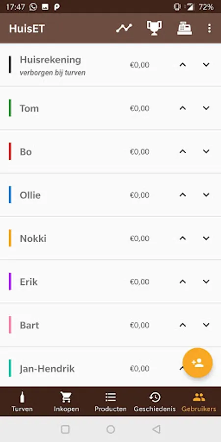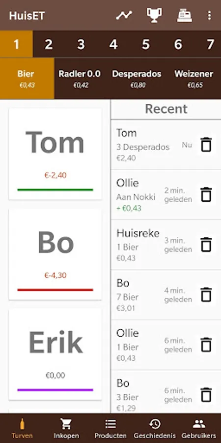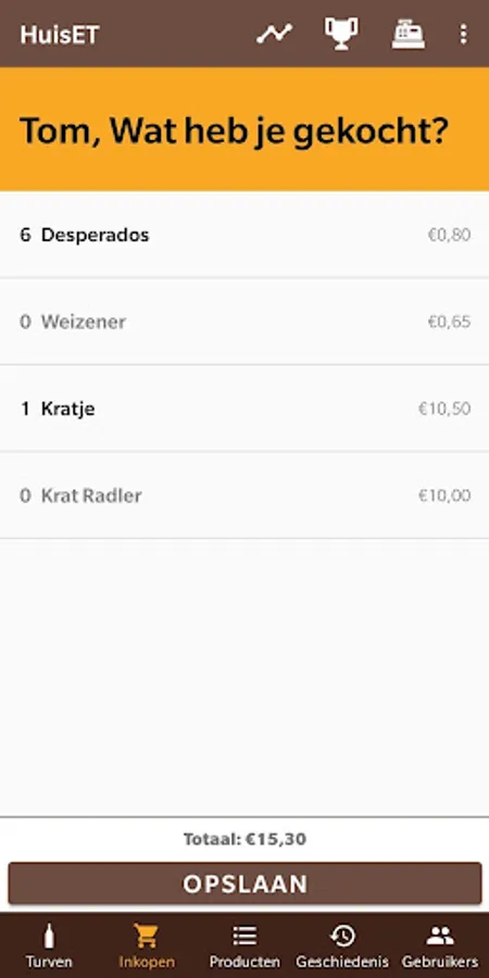 With HuisET you can keep track of the costs for all your beers, wines, snacks, eggs and other products. HuisET is the ideal replacement for the paper peat list that can be found in every student house. Give your old tablet / phone a second life as a Home Electronic Turf System!