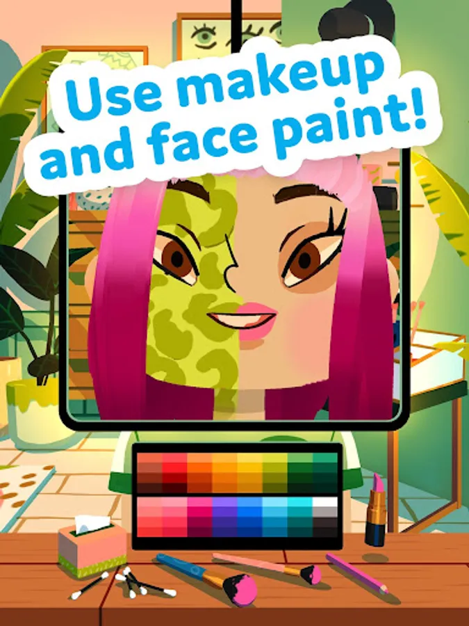 Welcome to Toca Boca Hair Salon 4! Unleash your creativity in the salon and whip up any style you can imagine. Whether you choose a character and create a brand-new look you’ve dreamed up or just see where the tools take you, each makeover is an adventure. Get creative with makeup, face paint, hair and beard tools, and much more!