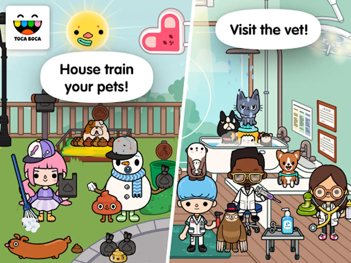 Welcome to Toca Life: Pets, where you and your animal friends run the show! What’s your favorite pet like? Furry and fast? Wet and wiggly? A little bit creepy? With more than 120 animals, Toca Life: Pets has every kind of pet you can imagine.