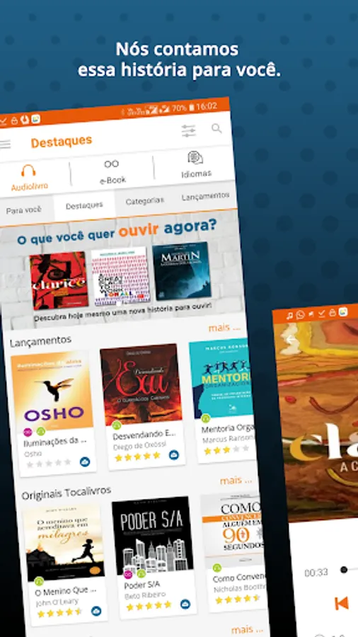 Sign-up on Audiobooks from Tocalivros, choose your book or bestseller and start to listen.