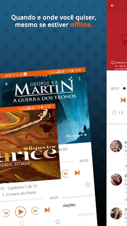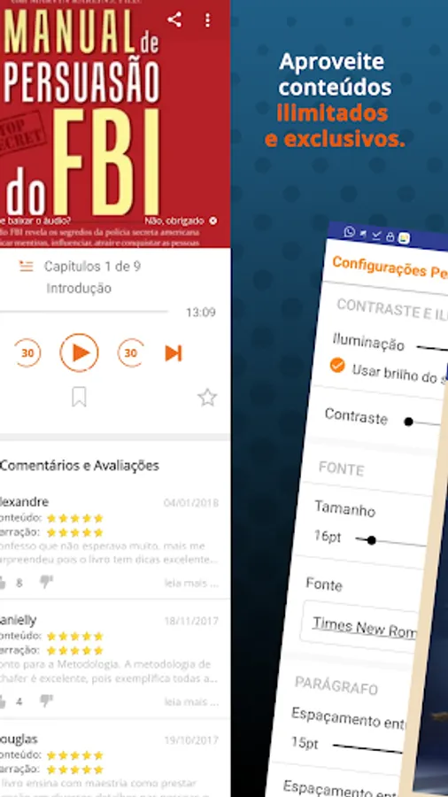 All books are narrated with artists and professional narrators. We keep a standard on the audio quality with perfect diction, background musics and sound effects. The best is: You can listen to your books with Portuguese audio.