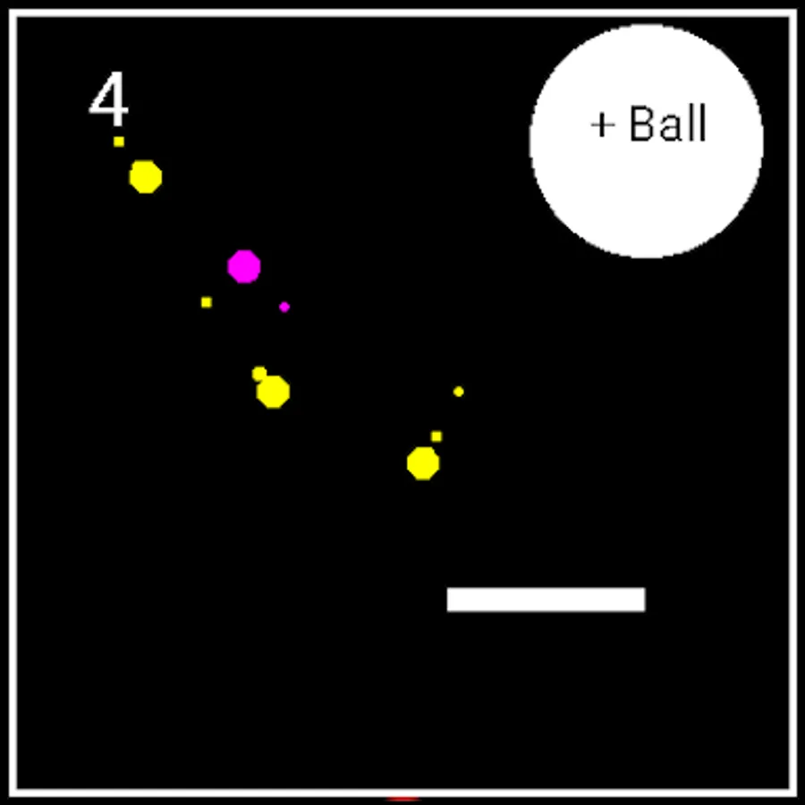 The ball cannot pass the player's bar, don't drop it! To move the player's bar, slide the bar with your finger. It's a hard game, it takes skill and reflexes. How many balls can you bounce at once?