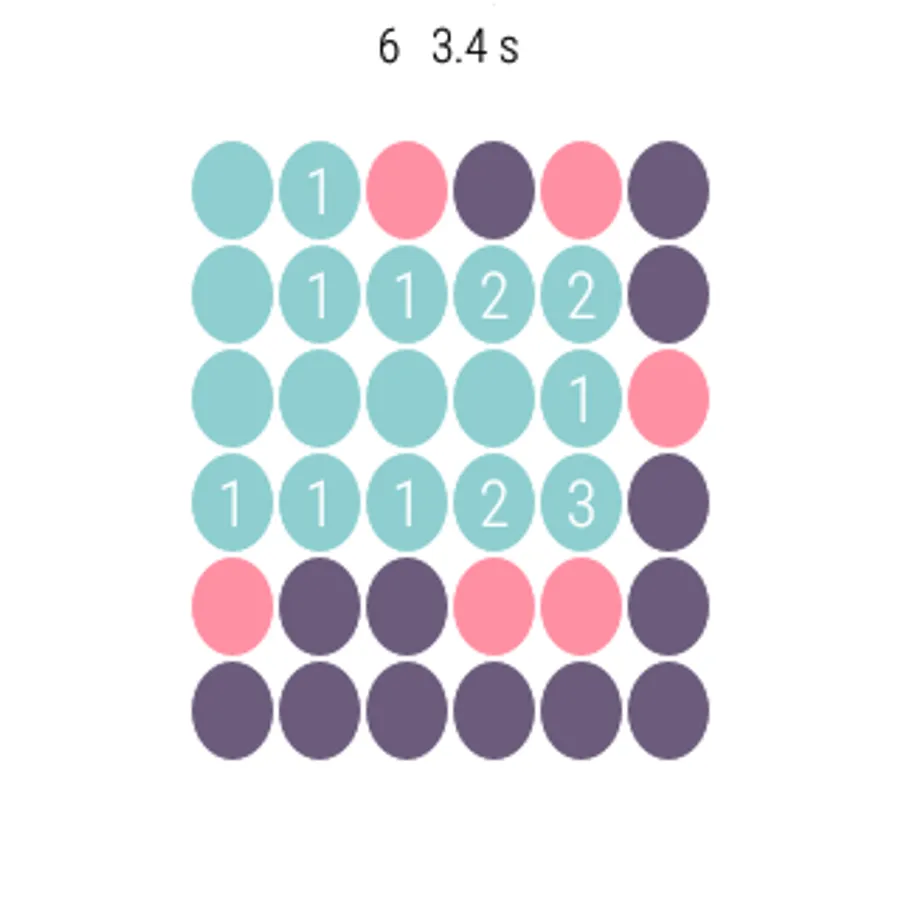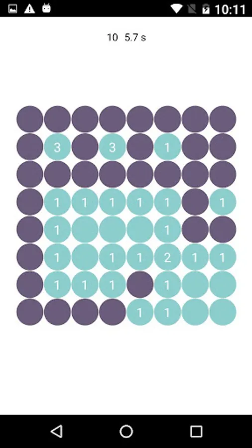 The game consists in clearing all the squares and cercles that don't hide a mine. The boxes have a number, which indicates the number of mines in the nearby cells. If a mine is discovered, the game is lost.