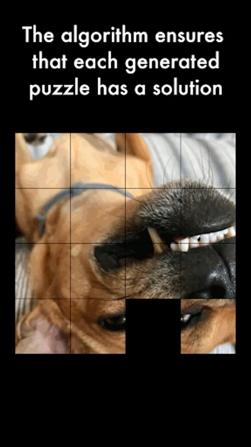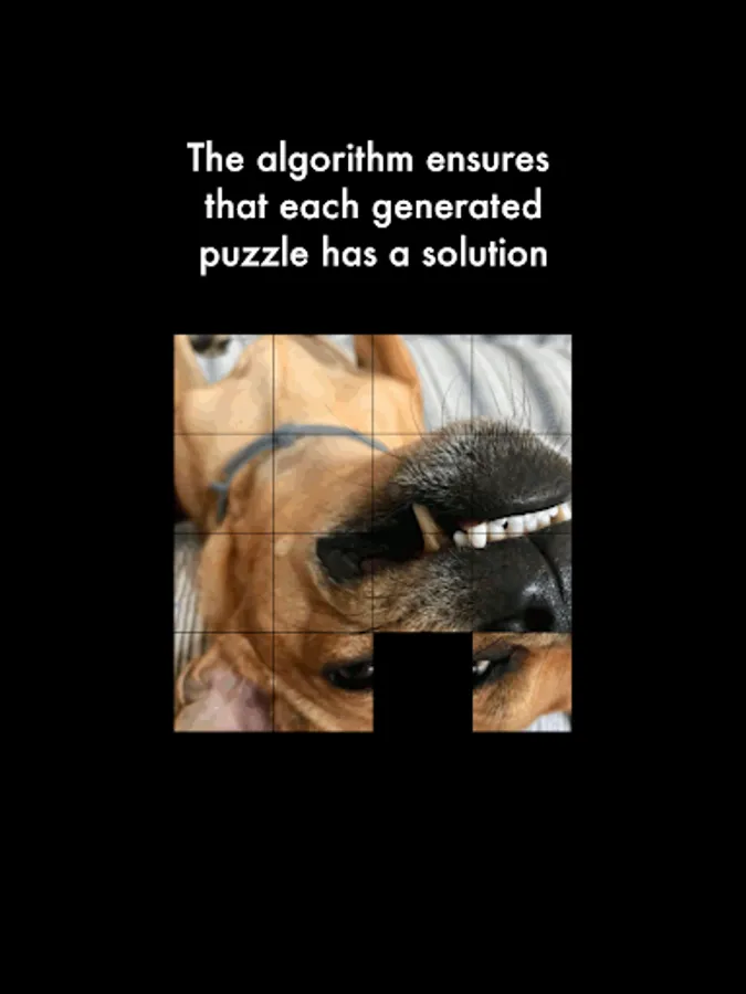 The game transforms a series of images with specific patterns into a random 4x4 puzzle. The algorithm ensures that each generated puzzle has a solution.