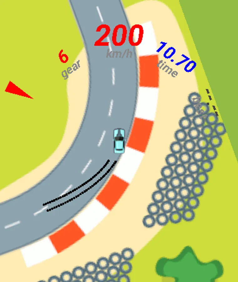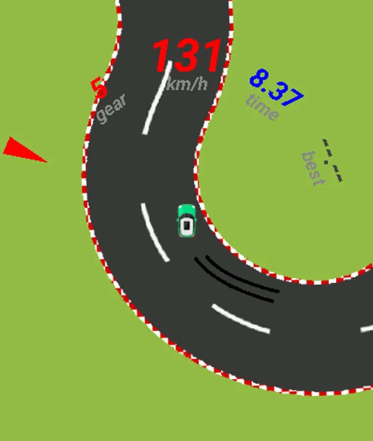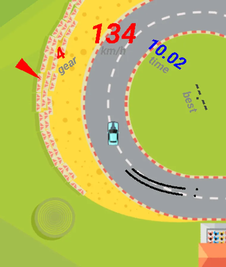 - If you get stuck in the circuit, you can use reverse gear, touch the bottom. To go forward again, tap the top.