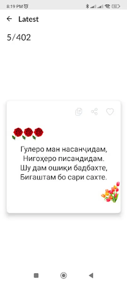Шеърҳои Гулбазмро баҳо додан ва шарҳ доданро фаромӯш накунед ва ба дӯстонатон мубодила кунед!