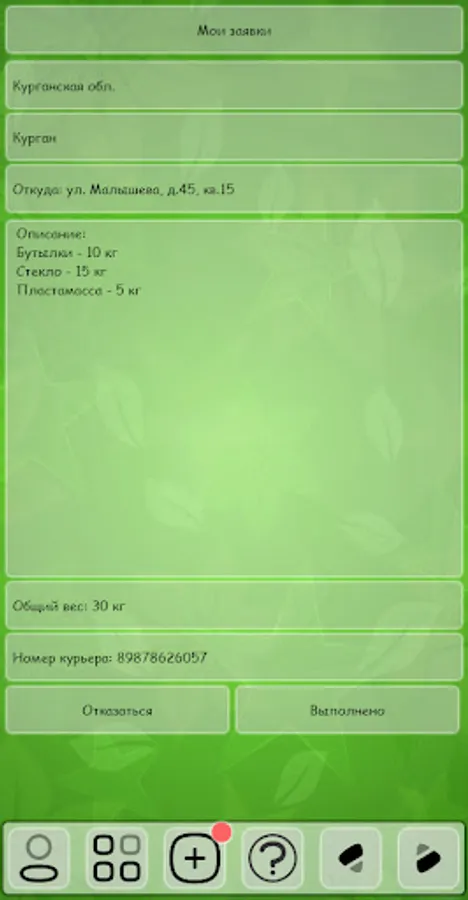 With this application, you can choose any free courier in your area and in your locality and order the delivery of recyclable materials to the warehouse in your city. The application has a history of your orders, and you can also control the entire process of cargo delivery.