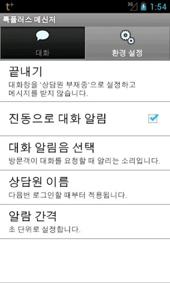 * "대화" 탭에서 대화상대를 선택하실 수 있습니다.