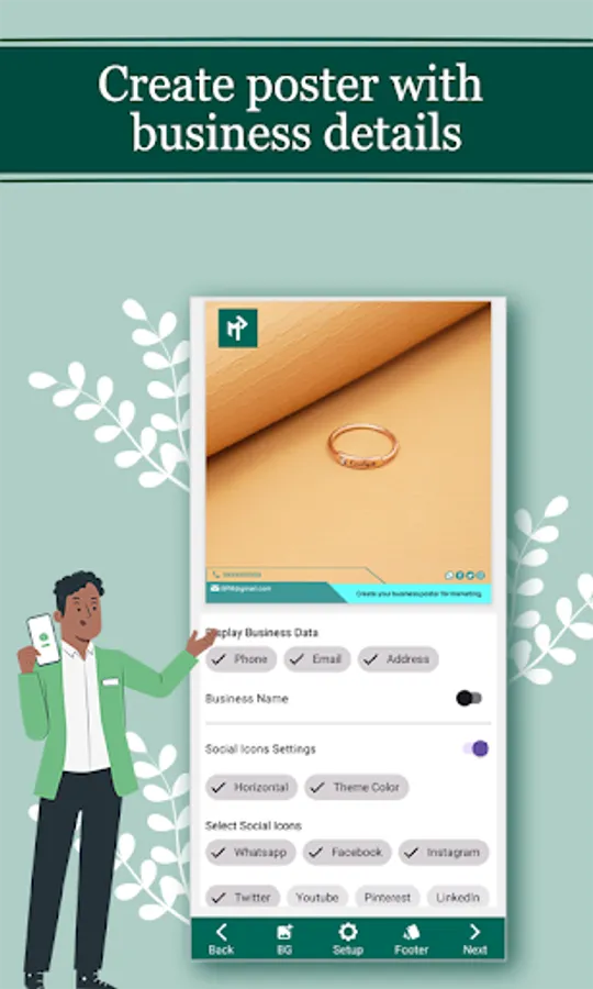 Our free poster creator is the best way to create custom posters. You can use any photo from your phone gallery to create custom poster with your brand details in stylish footers.