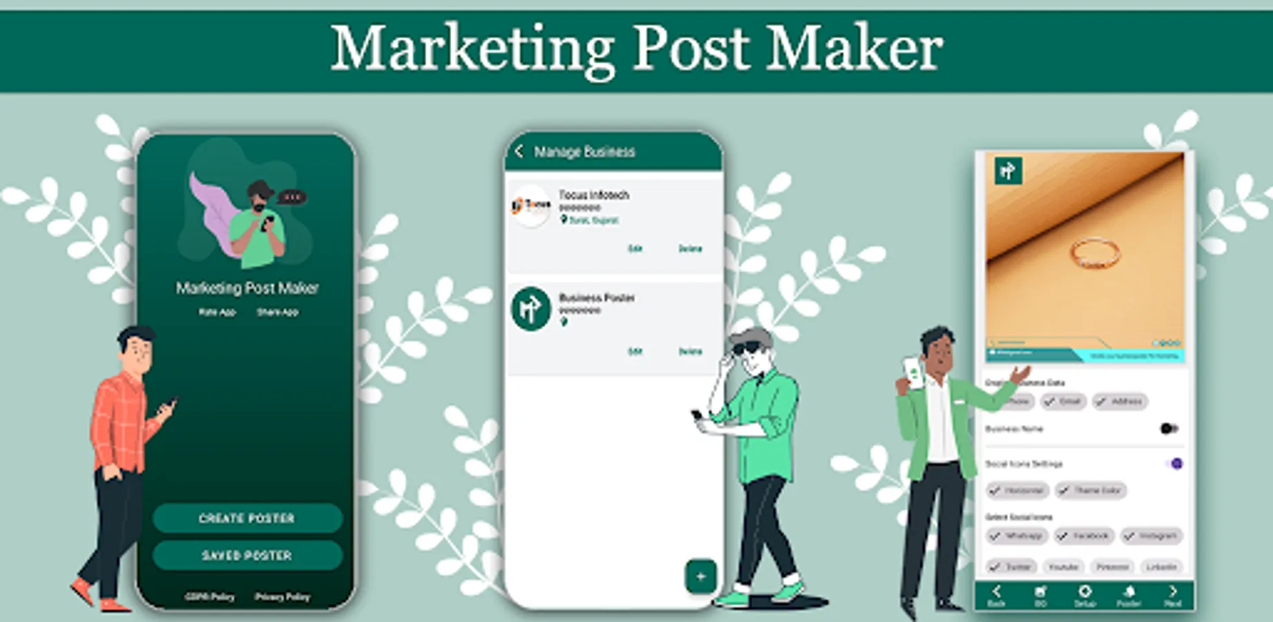 Use this graphic design app Marketing Post Maker to grow your business across social media at a faster pace.