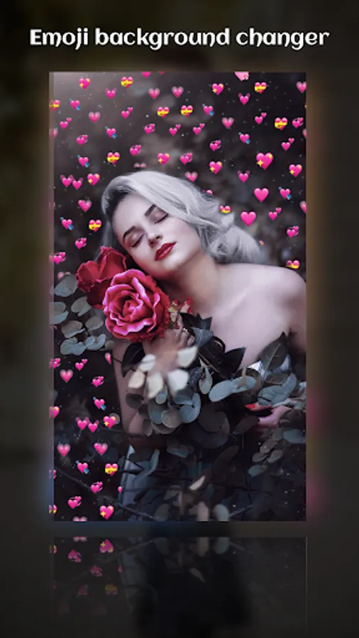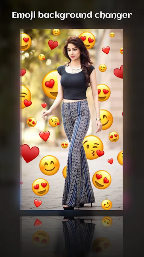 with Emoj Background Changer edit your photo to look cute girl with hundred of emoji background, heart crown effect, flower crown, dog face camera, cat stickers..