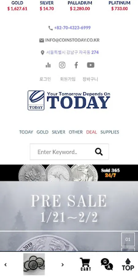 -Coins Today is linked to international precious metal prices and exchange rates 24 hours a day, so it can be purchased at a reliable sales price.