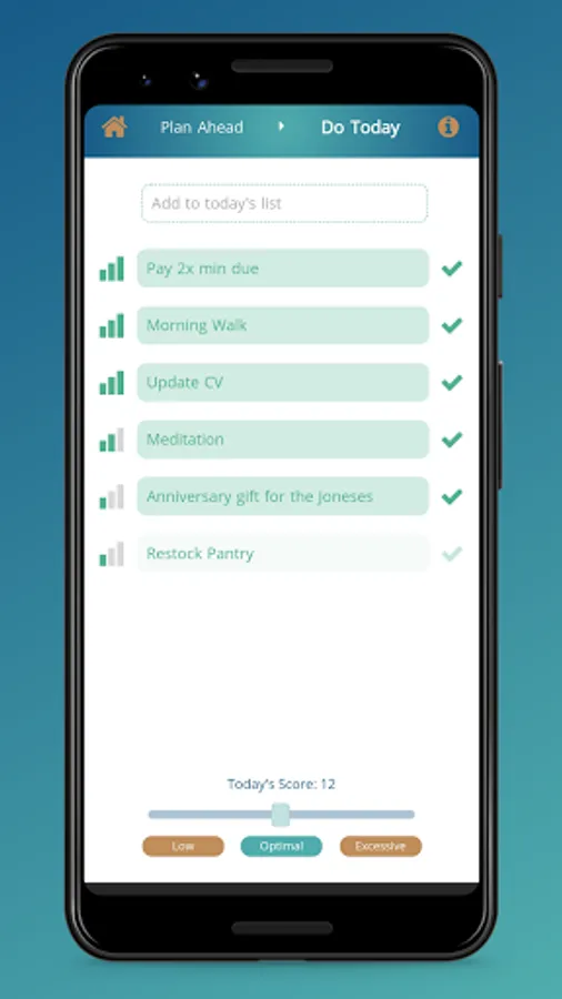 EXECUTION: Track your Tasks and Habits in one place using the "Do Today" list with a daily productivity score.