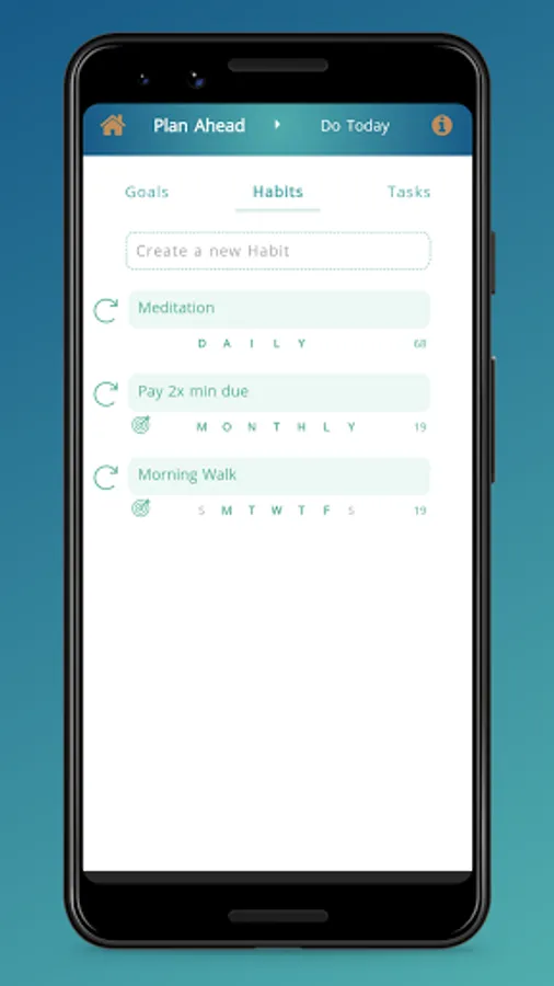 3. HABITS - Create Daily, Weekly, and Monthly Habits. They will show up in the Do Today list on relevant days.