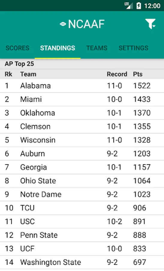 Download the app and chill out for the whole College Football season. It will instantly and constantly provide you with college football scores, rankings and news. It is freshly updated & smartly organized so you can enjoy the streams accordingly.