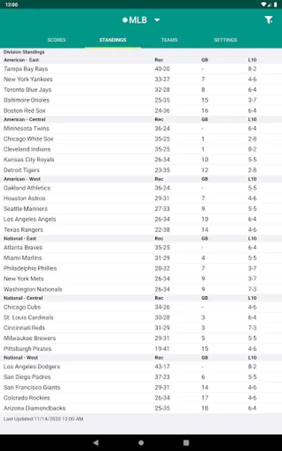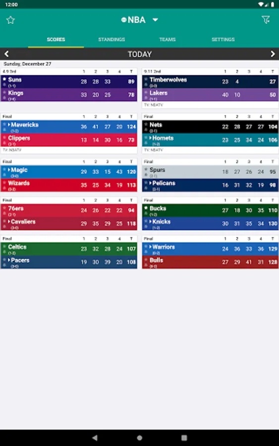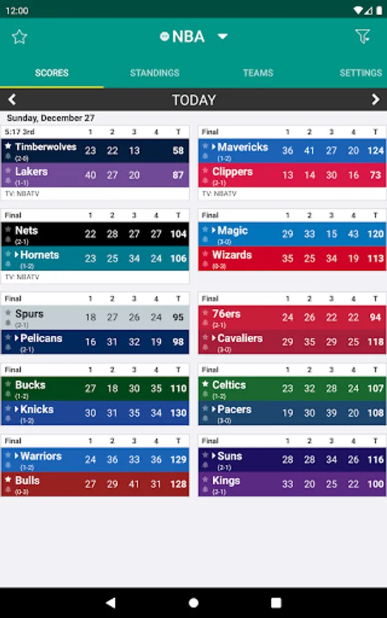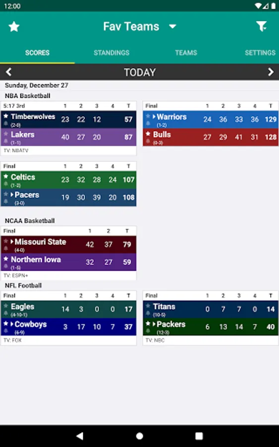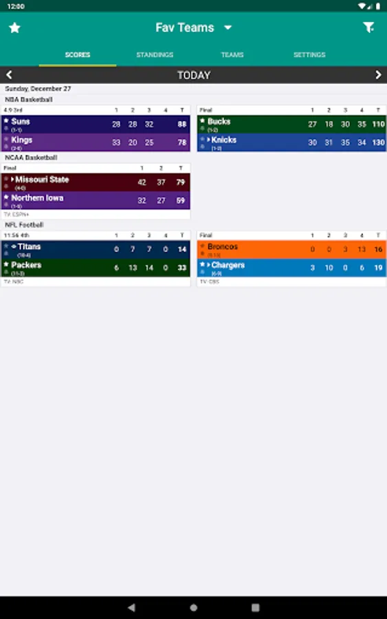 Sports Scores delivers up to date scores, schedules, and standings, and allows you to setup notifications for your favorite teams. The scores constantly update so you will never miss any sports action again!