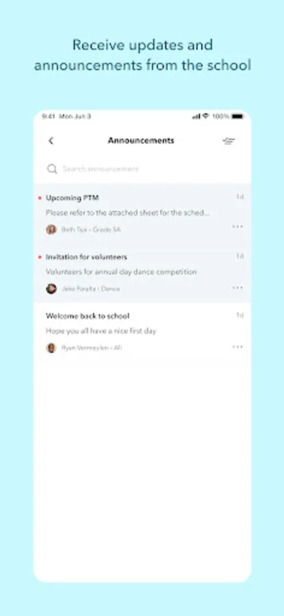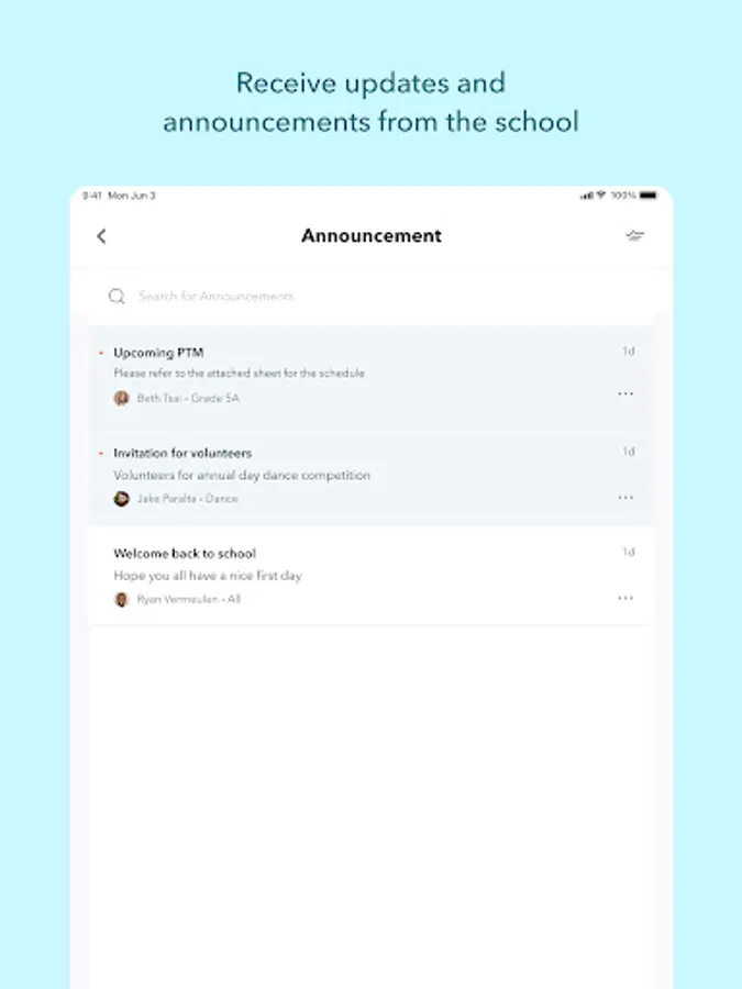 * Easily view all school announcements, notifications, messages and more