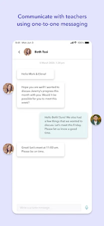* Have one-on-one conversations with school teachers (this is a restricted feature: if you don’t see this, please contact your school administrator)