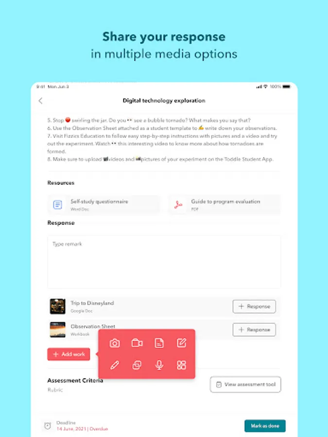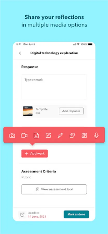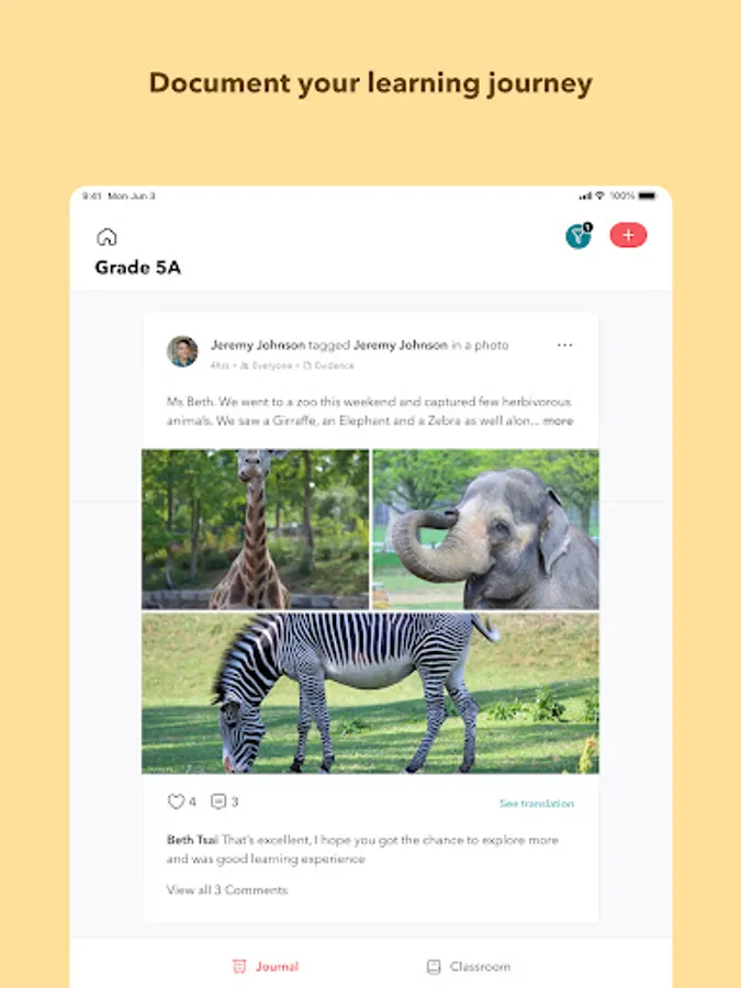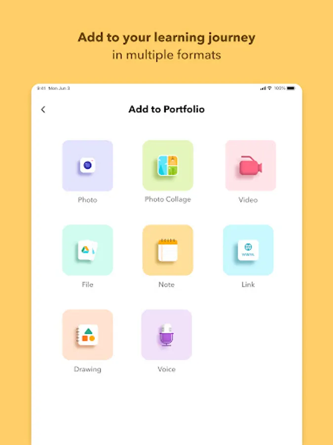 * Document your learning journey in the form of photos, videos, galleries, audio notes, etc.