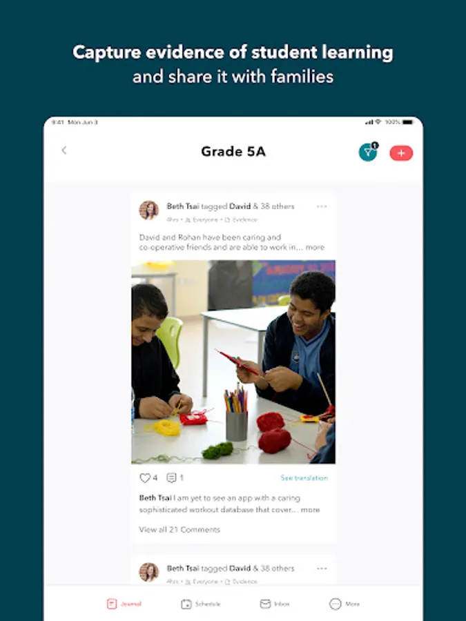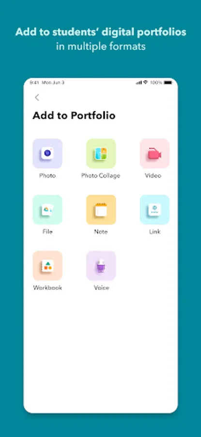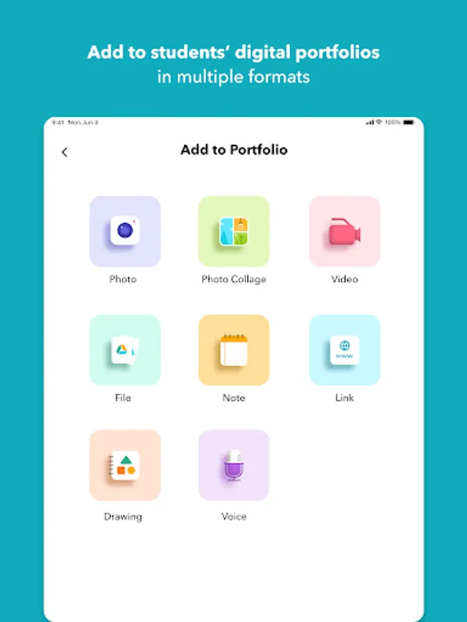 * Capture evidences of student learning through photos, videos, audio notes and more