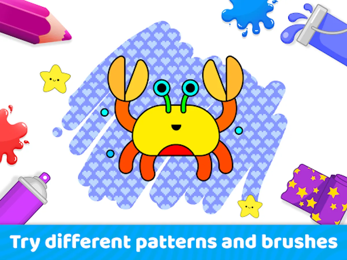 Get enjoyment from kids painting games with different tools and patterns. Beautiful graphics and simple guidance of a toddler coloring book for 3+ and drawing games make it very suitable for 2+ toddlers as well. Enjoy kids drawing and learning games through the fun play of this stunning toddler educational games.