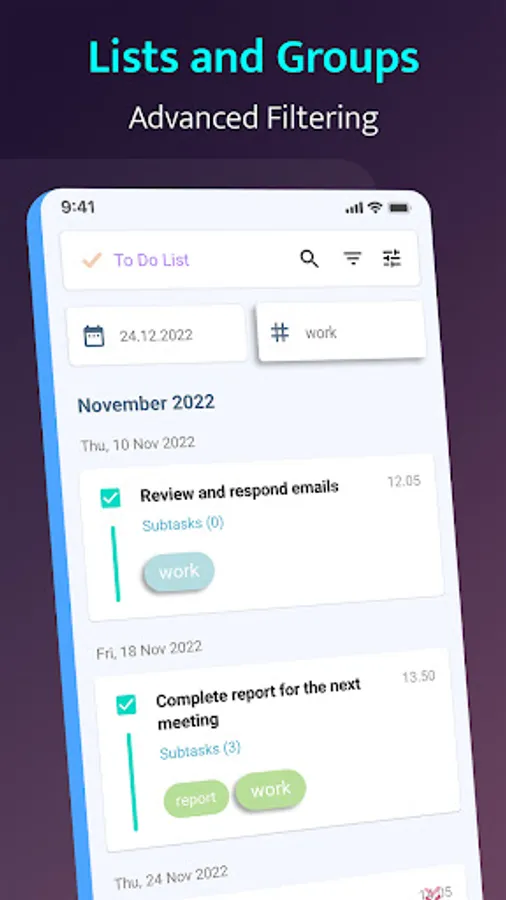 📂 Create lists and groups: Organize your tasks into lists and groups to keep your to-do items organized and easy to find.