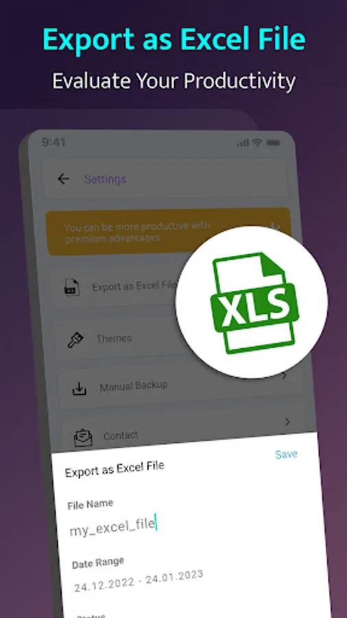 💾 Export as excel file: Export your tasks and lists as an Excel file for easy sharing and integration with other tools.