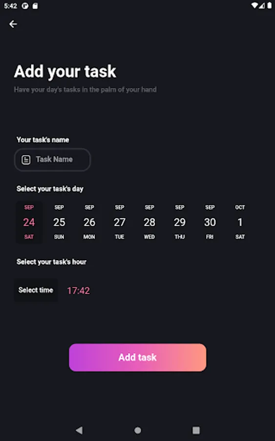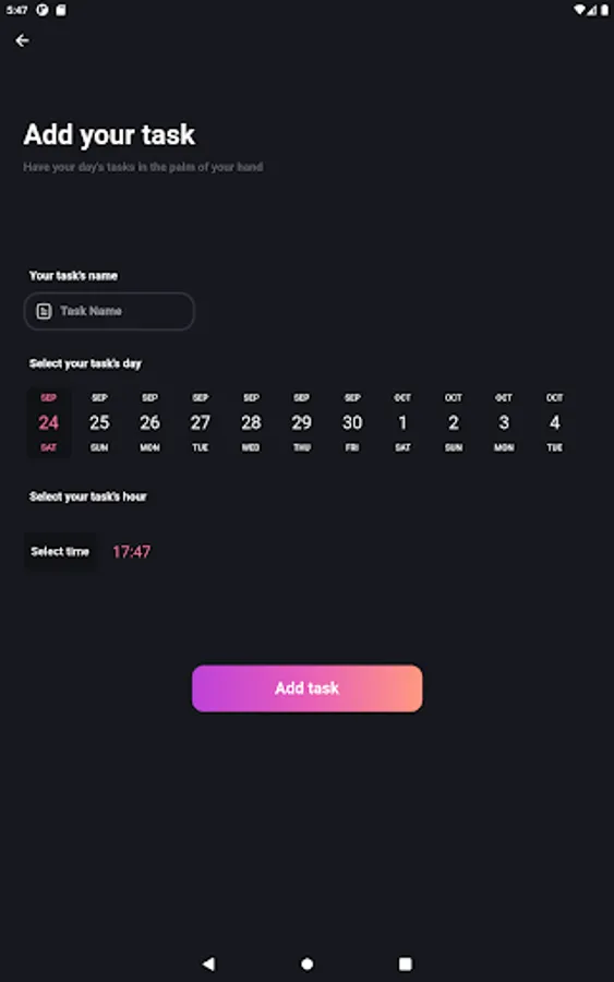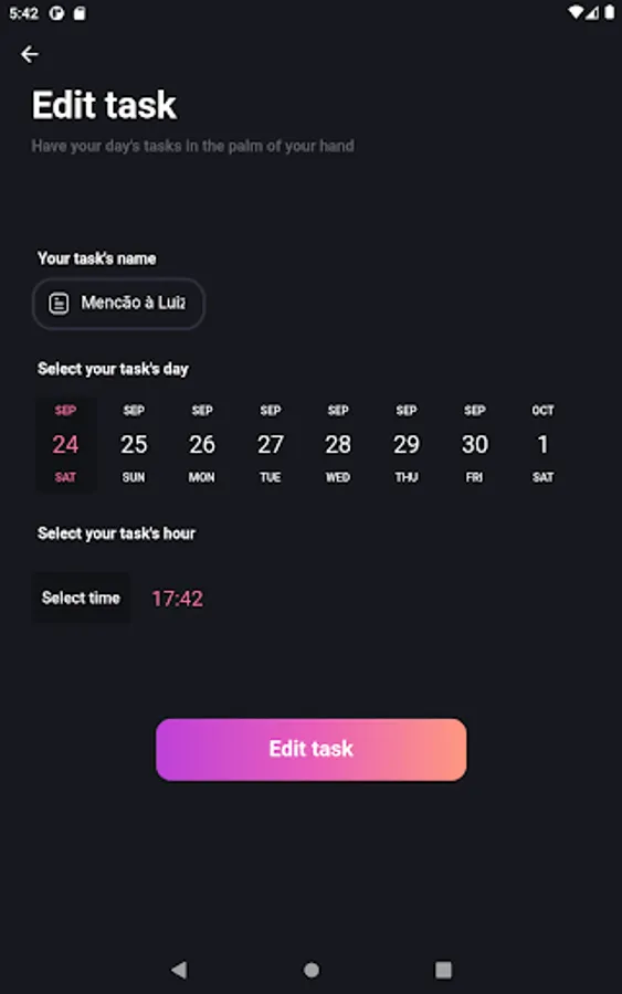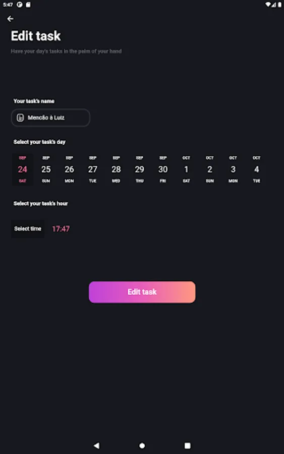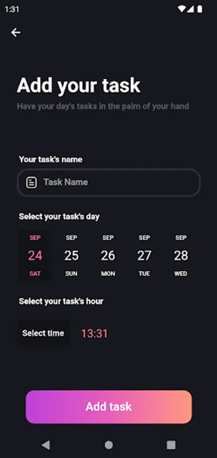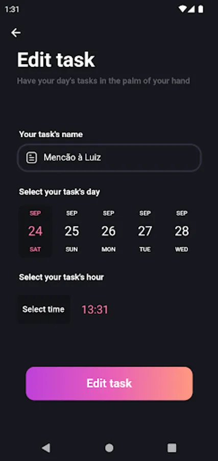 Task management app! With it, you can receive alerts about your tasks, 30 minutes before and at the time you want to schedule your activity.