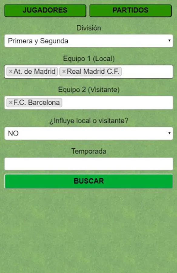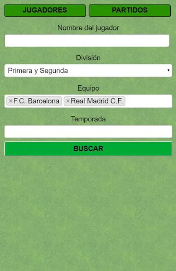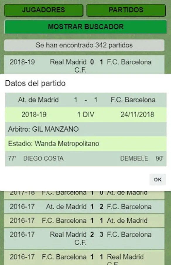 Do you want to know how a First or Second Division football match was? In the app you will be able to search all matches by season, by football teams, by divisions, by local or visiting team. You will know how any football result has been, the date of the match, the field on which it was played, the referee who whistled it, who scored the goals and what minute they went. These are some examples of searches on football matches and results that you can perform.