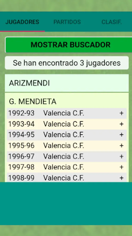 You will be able to know the result of any match that Valencia CF has played in the first division since 1929. The classification of all football seasons. The data of your favorite Valencia CF players such as Kempes, Claramunt, "The louse" López, Mendieta, Albelda, Giner ...