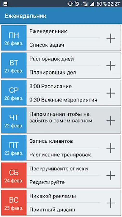 Diary without advertising time for planning and routine. Just add new tasks and scroll through the list to view.