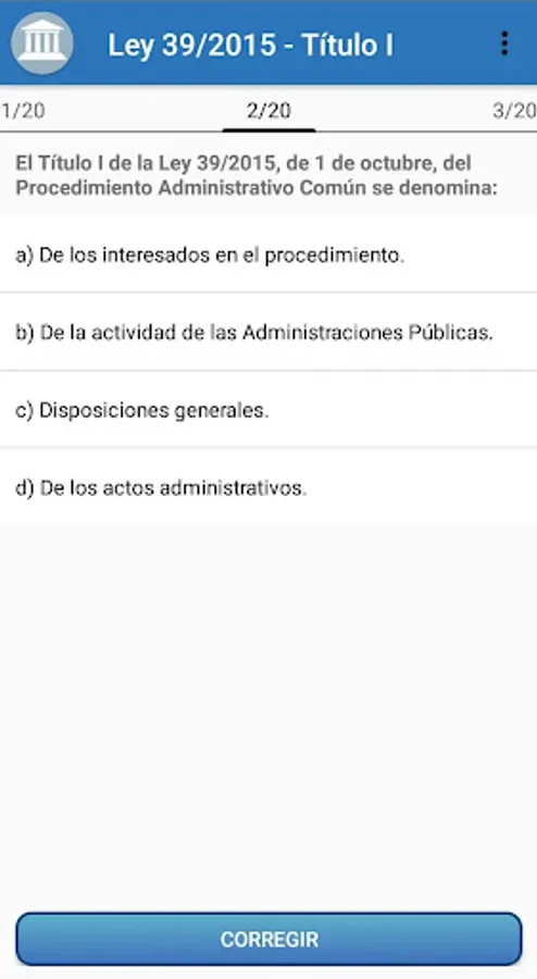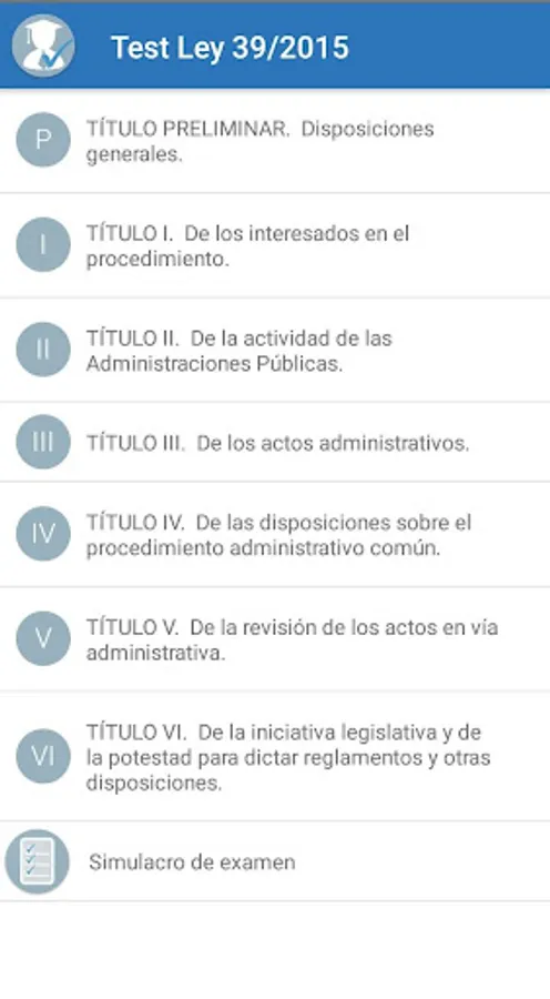 Prepare your oppositions with this powerful App designed specifically to test the Law 39/2015, of October 1, of the Common Administrative Procedure of Public Administrations.