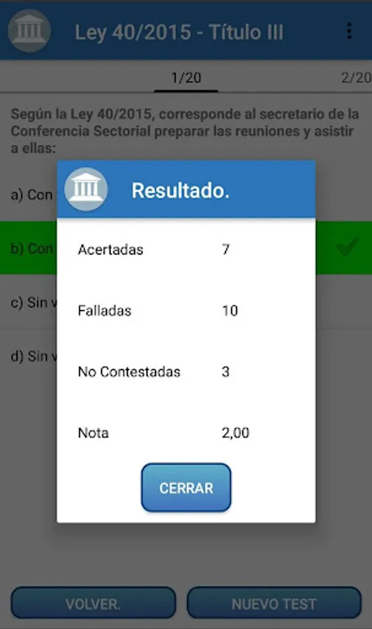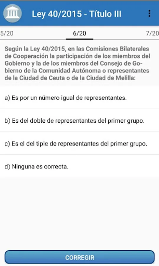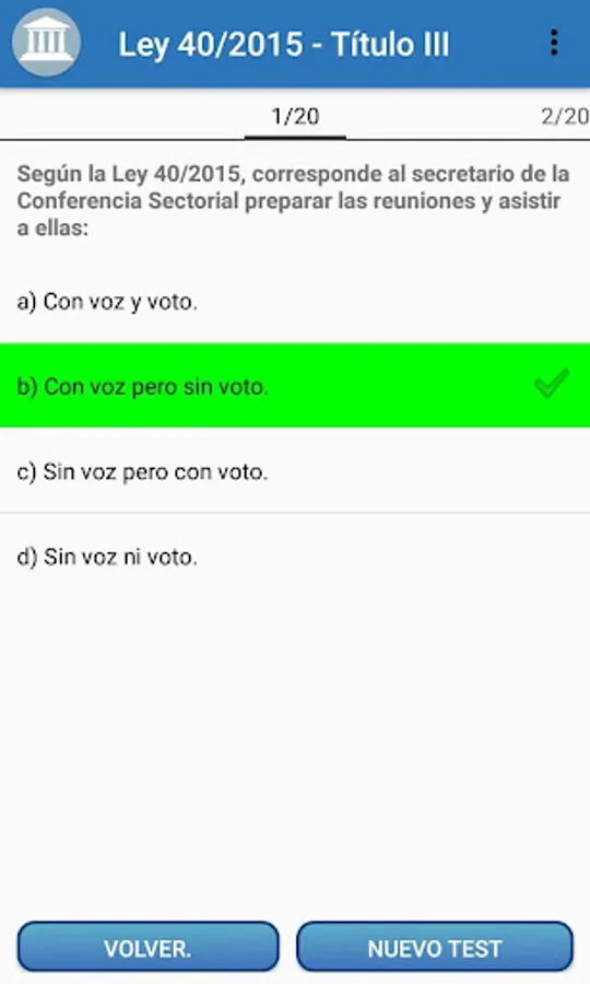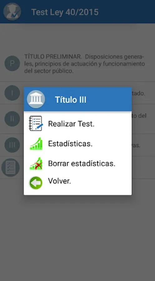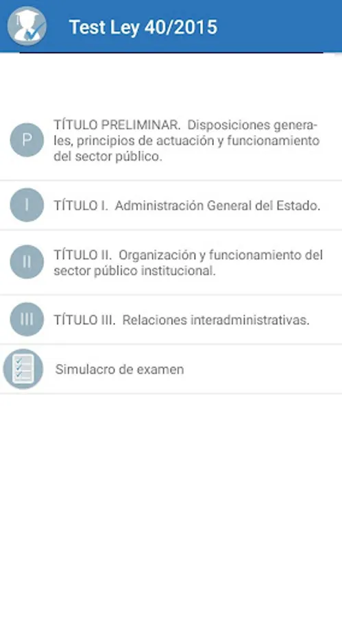 Prepare your oppositions with this powerful App designed specifically to perform Test of the Law 40/2015, of October 1, of the Legal Regime of the Public Sector.