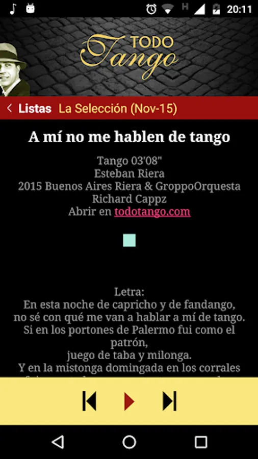 Everything about the Argentine tango. With this app you can listen to free hundreds of tangos that change daily.