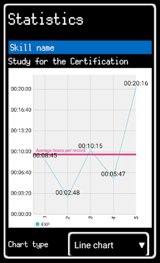 * You can see statistics how long spent time for your skill.