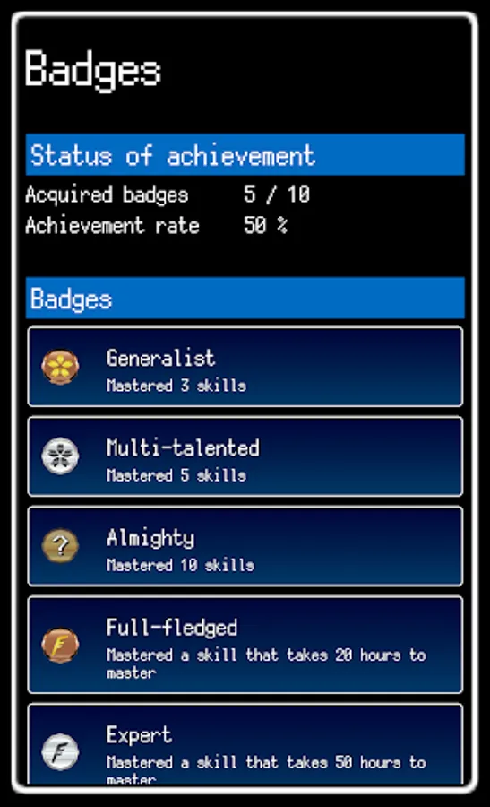Depending on usage of app, you will get badges and you can see them here as a list.