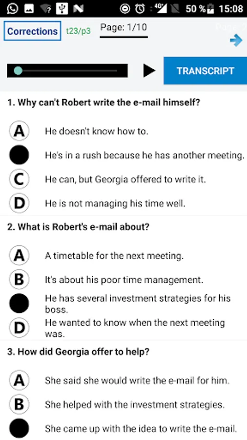 Toeic Listening 2/3 https://play.google.com/store/apps/details?id=com.toeic.ouamassi.listening.part2