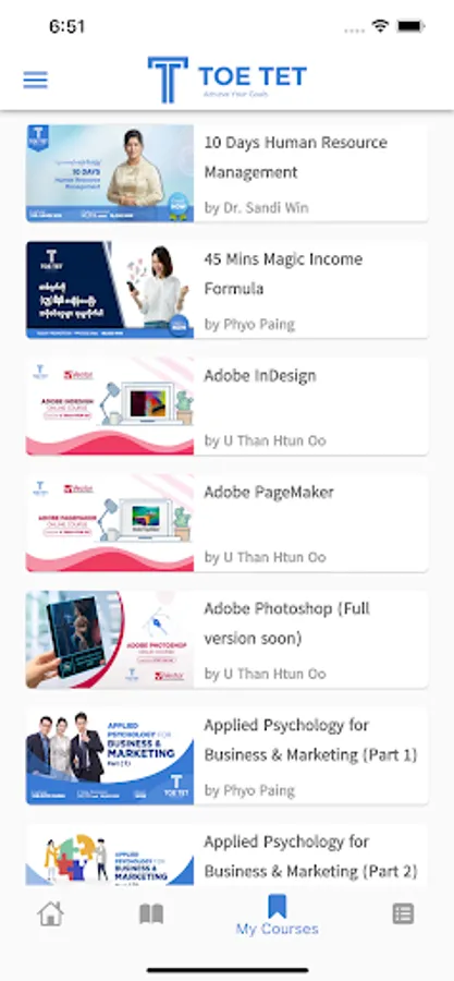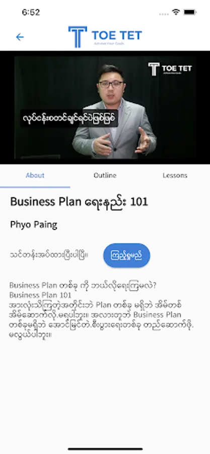 Toe Tet is an online learning app for personal, professional and business development to help you achieve your goals. Toe Tet online courses are filled with recorded video lessons which you can study at your own pace. If you send the assignments what you have learnt in this course to admin@yec.edu.mm, we will issue you a digital certificate with Toe Tet logo on it. The user experience would be a lot better if you can study with laptop. With love, ToeTet.com