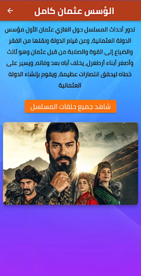 The events revolve around the invader Osman I, founder of the Ottoman Empire, and about the establishment of the state and its transfer from poverty and loss to strength and solidity by Osman, who is the third and youngest son of Artgrel, succeeds his father after his death, and follows in his footsteps to achieve great victories, and establishes the Ottoman Empire